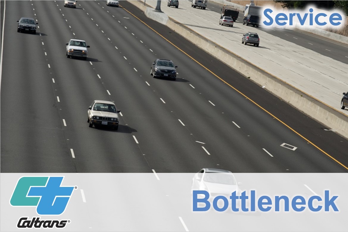 Description: Bottleneck Mapping is a subproject of the Mobility Performance Report, which is one of the products of the Mobility Performance Reporting and Analysis Program (MPRAP). The Mobility Performance Report is prepared by the California Department of Transportation (Caltrans) and District staff to provide detailed data about highway system performance related to congestion and mobility. Caltrans collects vehicle counts and calculates speeds at all hours of the day and all days of the week in major metropolitan areas throughout California via the Caltrans Performance Measurement System (PeMS--see Data Source tab). This information helps identify congestion bottlenecks and results in more cost-effective investments to improve the performance of the State Highway System.